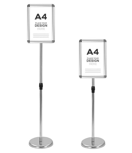 ARATERVIO A4 Aufsteller Höhenverstellbar 81-130cm, Infoständer aus Edelstahl, Klappbarer Plakatständer & Präsentationsständer für Hoch-/Querformat, Wetterfest für Innen- und Außenbereich