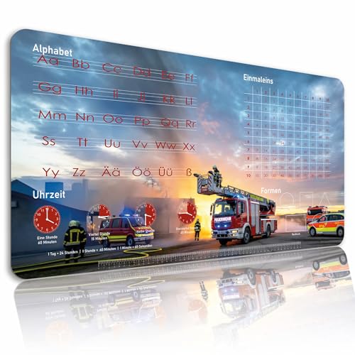 Schreibtischunterlage Kinder abwischbar 80x40 cm Lernunterlage Schreibtisch Unterlage & Tischunterlage Schreib-Tisch Deskmat & Unterlage Robuste Malunterlage Schreibtisch Unterlegmatte (Feuerwehr)