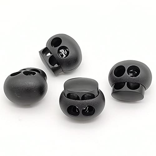 Hrlace Federschloss für KordelzugSchwarzer Kunststoff Doppel Loch Seilendverschluss Kordelstopper Oval Kippstopper Schieber für Kordelzüge, Taschen, Hüte, Schnürsenkel, Kleidung 200 Stück