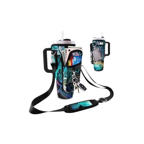 Bolimoss Stanley Cup-Tasche für Stanley 40oz/30oz-Trinkbecher mit Handytasche, Wasserflaschen-Tragetasche Zubehör mit 2 verstellbaren Riemen & 3 Taschen aus Neopren, für Spaziergänge, Reisen, Wandern