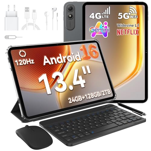 OSCAL PAD 200 13,4 Zoll Tablet mit Tastatur Stift, Android 16 120Hz Ultradünn Tablet-PC, 24GB+128GB/2TB TF Gaming Tablets, Gemini AI,PC Mode 3.0,8300mAh/18W,13MP,4G LTE Dual SIM/5GWiFi/Widevine L1/GPS