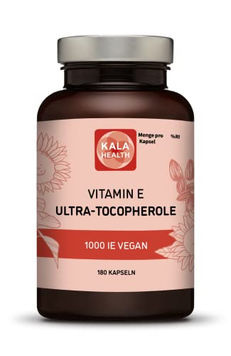 Kala Health Vitamin E 1000 IE Ultra Tocopherol 450mg Vitamin E Vegan – alle 4 Tocopherole – Alpha Tocopherol + Beta Tocopherol + Gamma Tocopherol + Delta Tocopherol – Einzigartiges d Alpha Tocopherol