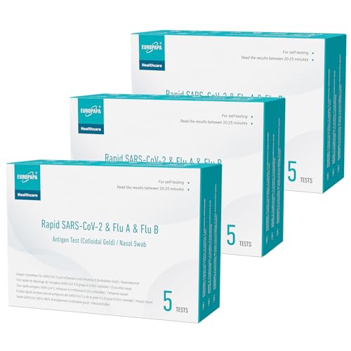 EUROPAPA 15x Corona Laientest Schnelltest und Grippe Test auf Covid-19 und Influenza A/B, Antigentest Selbsttest SARS-CoV-2 Flu A Flu B 3in1 Combo Rapid Test Cassette, für Zuhause, Einzelverpackt