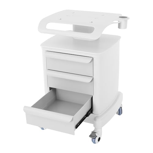 Salonwagen Kosmetikwagen mit Rollen & 3 Schubladen,Rollwagen Friseurwagen Weiß, 51x47x77cm,Friseur Zubehör,für Schönheitsinstrument Und Medizinische Zwecke