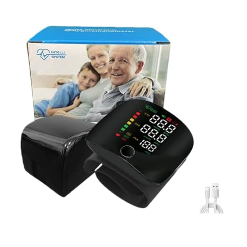 Behalte deinen Blutdruck im Blick – sicher, einfach & ohne Aufwand.Digitales Handgelenk - Blutdruckmessgerät mit LCD - Bildschirm, automat. Messung, Aufladbar, Lesespeicher, Sprachausgabe