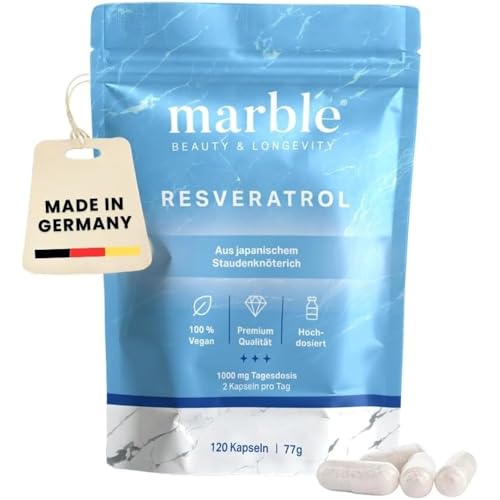 marble® Resveratrol 1000mg – 120 vegane Kapseln - Trans-Resveratrol hochdosiert aus Japanischem Staudenknöterich 100:1 Extrakt + Piperin - Longevity Supplements