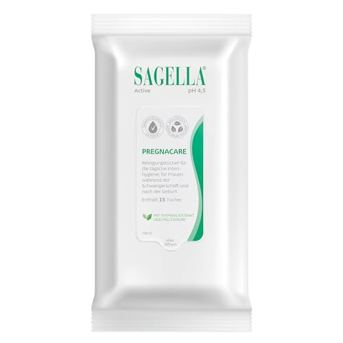 Sagella Active Reinigungstücher: Sanfte Intimpflege speziell angepasst für Frauen während und nach der Schwangerschaft. Erfrischende Reinigungstücher für unterwegs - 15 Stück