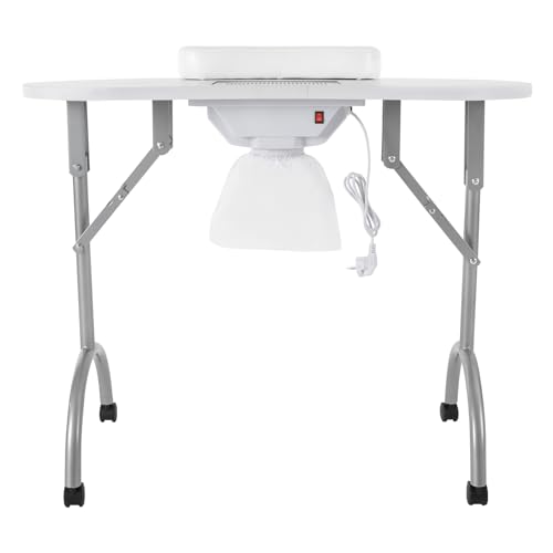 Manikürtisch mit Staubabsauger, tragbarer und faltbarer Nageltisch für Nagelstudio, 5,5W Motor, 2800 U/min, 4 Räder mit Bremsen, großer Tischfläche, inkl. Armlehne & Tragetasche
