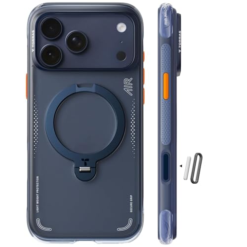 TORRAS Ostand Q3 Air für iPhone 17 Pro Max Hülle mit echtem Airbags Doppelter Schutz (360° Magnetischer Robust Ständer) Matt Handyhülle mit Kamerasteuerung Taste Mitternachts