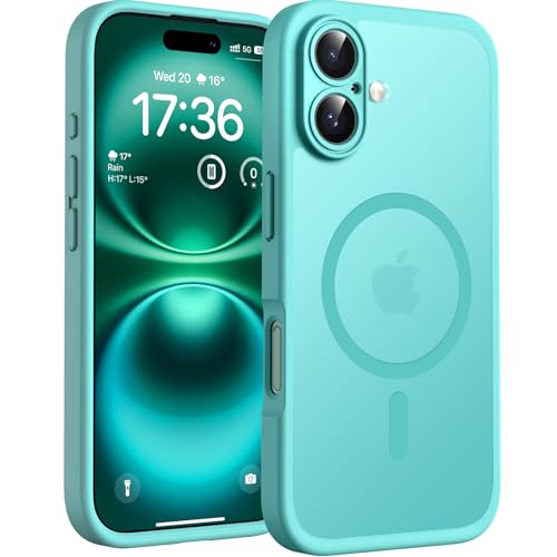 TOCOL für iPhone 16 Hülle für Magsafe, Vollständiger Kameraschutz Stoßfest Kratzfest Transluzente Rückseite Magnetisch Handyhülle für iPhone 16 Case, Blaugrün