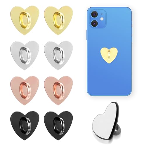 8 Stück Handy Ring Herz Halterung Rosa Selbstklebender Handyhalterung Handy Finger Herzförmiger Ringhalter Metall Herzförm Handyringhalterung Haken-Handyhüllen-Zubehör für Handys Tablets