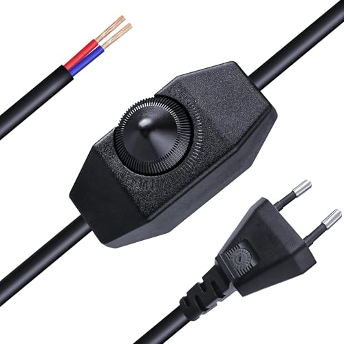 Schwarz Verlängerungskabel mit Dreh-Dimmer-Schalter, 1,5 m (150 cm), 1,2 A, 220V-240V, 100 W, Lampenkabel mit Schalter, kompatibel mit dimmbaren LED-, Halogen- und Glühlampen