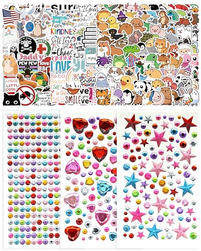 Meafeng Laptop Sticker, Board Aufkleber Set, 200 Stück Dekorative Aufkleber mit 478 Stück Strasssteinen für Laptops, Skateboard, Wasserflaschen, Fotoalben, zum Personalisieren