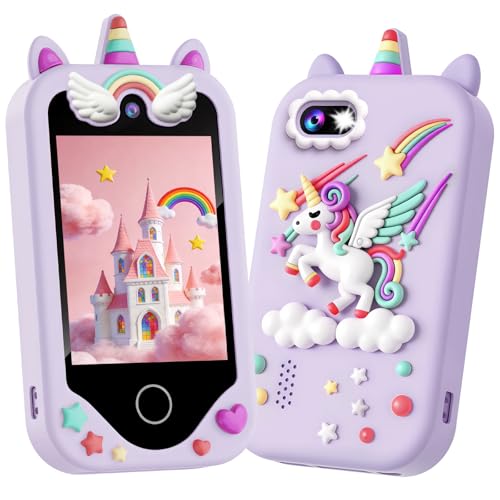 Kinder Smartphone für Mädchen, Kinder Telefon Spielzeug mit Touchscreen, Kinder Weihnachtsgeburtstagsgeschenk für Alter 3-8 Jahre alt, Dual-Kameras, Lernen, Musik-Player, Spiele, Lila