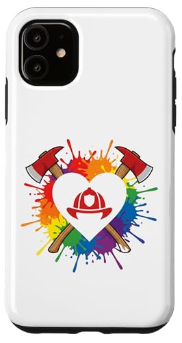 Hülle für iPhone 11 Regenbogen Herz Feuerwehr Pride Zwei Äxte Motiv