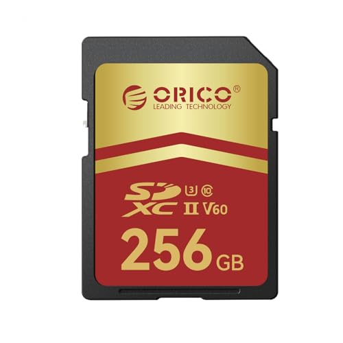 ORICO 256 GB SD-Karte, UHS-II, C10, U3, V60, 4K UHD, Full HD, bis zu 300 MB/s Lesegeschwindigkeit, SDXC-Speicherkarte für professionelle Fotografen und Content Creator – SD60