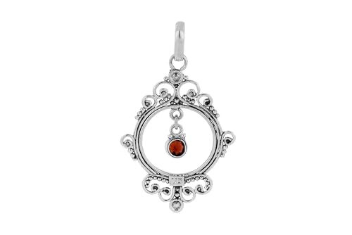 Windalf Schmuck-Anhänger AMALY Ø 2.4 cm Amulett mit beweglichem Granatstein 925 Sterlingsilber