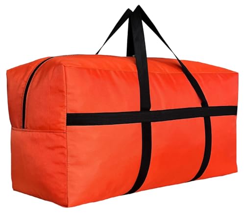 DoYiKe, Extra große, strapazierfähige orangefarbene Aufbewahrungs-Reisetasche mit Reißverschlüssen und Tragegriffen, große faltbare Reisetasche für Reisen – 142 × 69 × 38 cm