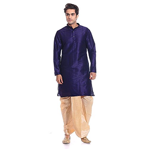 Royal Kurta Mag Men's Silk Kurta Pajama & Dhoti Medium Navy Blue, Golden