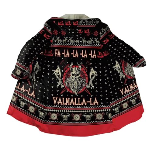 Viking Clothing Warm Verdickt Herren Kapuzenumhang, 3D Druck Nordische Mythologie Tattoo Winterjacke, Mode Lässige Sherpa Futter Parka, Mittelalter Hornschnalle kaschmir Mantel Bademantel(Valhalla,XXL