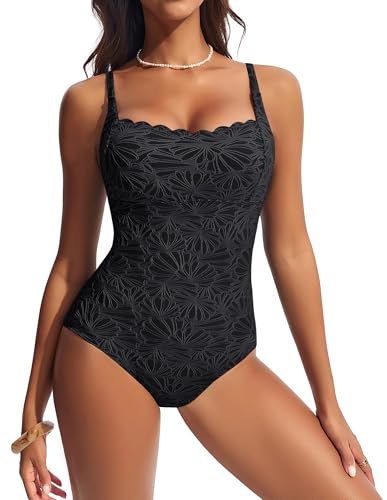 Hanna Nikole Damen Jacquard Textured Einteilige Badeanzug, Quadratischer Kragen Bauchweg Push Up Badeanzüge, Elegant Verstellbare Schultergurte Wellenrand Bademode