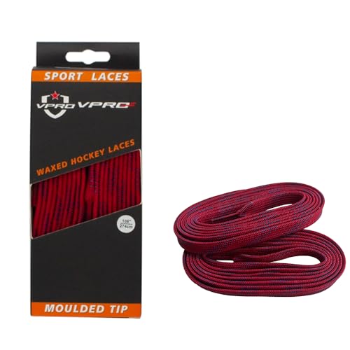 VPRO Gewachste Eishockey-Schnürsenkel in verschiedenen Farben, Schlittschuh-Schnürsenkel sind das perfekte Geschenk für Sportbegeisterte (Rot-blau, 120“)