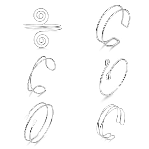 Ylinwtech 6 Stück Boho Armreif Silber 925,Armschmuck,Oberarmreif Silber Set,Ideal für Partys und Ausflüge, silberfarben