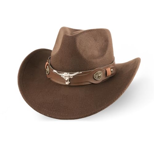 Cowboyhut für Männer und Frauen, westlicher, atmungsaktiver Hut aus Kunstwildleder, verstellbares Innenband von 56 bis 58 cm, Fedora-Hüte mit breiter Krempe, braun