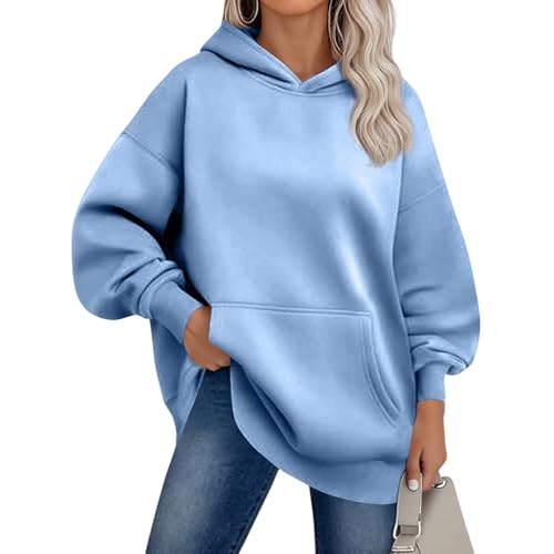 Hoodie Damen Pullover Elegant Sweatshirt mit Kapuze Langarmshirt Oversize Dünnes Kapuzenpullover Sport Sweater Basic Pulli Outdoor Winter Pullover Streetwear (Hellblau, XL)