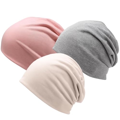 GakQll 3er Pack Chemo Kopfbedeckung Damen Sommer, Beanie Damen, Atmungsaktive Schlafmütze, Beanie Mütze für Joggen, Fahrradfahren, Schlafen, Schwarz, Rosa, Beige