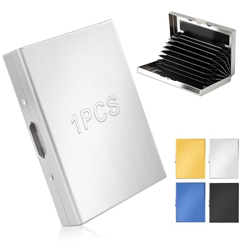 mawmuaw Visitenkartenetui 10 Fächer Visitenkarten Etuis Edelstahl Business Card Holder RFID NFC Schutz Kartenetui Metall Visite Karten Etui Silber für Damen und Herren Aufbewahrung Kreditkarten