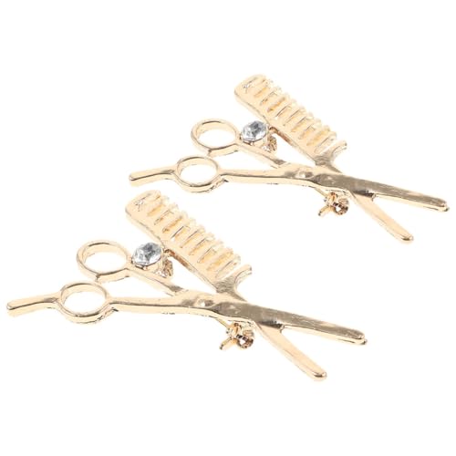 TEHAUX 2 Stück Friseur Broschen mit Schere und Kamm Zinklegierung Goldfarbene Sicherheitsnadeln Modischer Zierschmuck für Damen und Stylisten