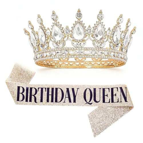 Volle Runde Mädchen Tiara Königin Krone Damen Brautkrone Diadem Kristall Barock Tiara Sparkly Strass Prinzessin Karneval Kopfschmuck für Hochzeit Prom Geburtstag Party