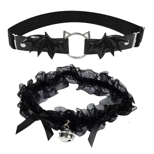 2 Stück Elastische Strumpfband Schwarz, Garter Belt Aus Spitze und Oberschenkel Band Aus Leder, Brautaccessoires, Partyaccessoires, Geeignet für Karneval, Weihnachten, Halloween und Abschlussbälle