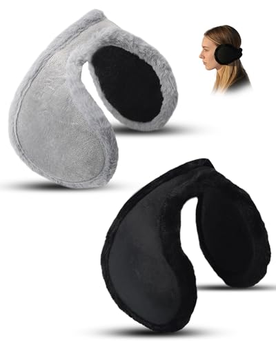 OulQinyhome 2 Stück Ohrwärmer für Männer & Frauen - Verstellbare Winter Ohrenschützer aus Fleece - Ohrenwärmer Unisex für Outdoor-Aktivitäten (Schwarz, Grau)