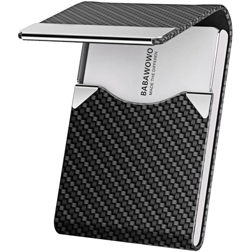 BABAWOWO Visitenkartenetui – Schlankes Visitenkartenetui aus PU-Leder und Edelstahl, Magnetverschluss, fasst 15–25 Karten Männer und Frauen (Schwarz Carbon)