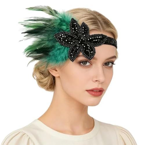 GYIOFAI 1920er Jahre Flapper Stirnbande, 1920er Jahre Vintage-Stirnband mit Federn, Great Gatsby-Kostümzubehör für Frauen Valentinstag Accessoire Abschlussball-Dekoration (Grün)