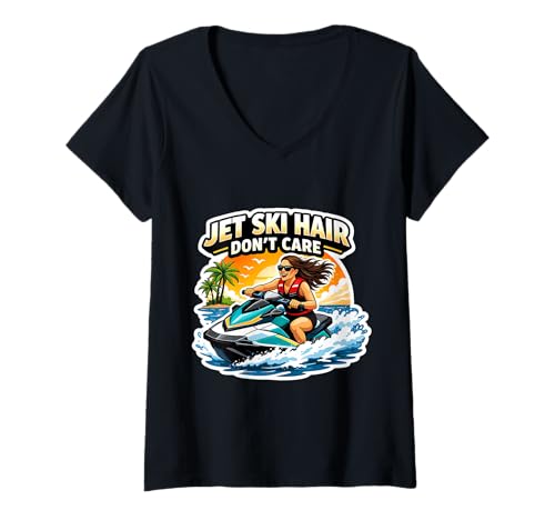 Damen Jet Ski Hair Don't Care Damen Jetski PWC Wasserfahrzeug T-Shirt mit V-Ausschnitt