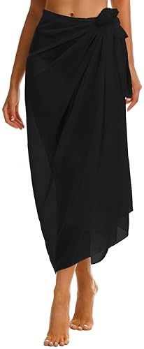 Gosunny Sarong Tuch Damen Sommer Chiffon Strandtuch Lange Strandkleid Leicht Pareos Bikini Cover Up(Schwarz)