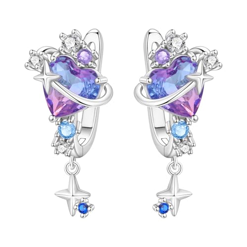 925 Sterling Silber Zirkonia Ohrhänger für Damen – Elegante Ohrringe mit Stern und Tiermotiven,Modeschmuckgeschenke, geeignet für empfindliche Ohren (Liebe Satelliten Ohrbänder)