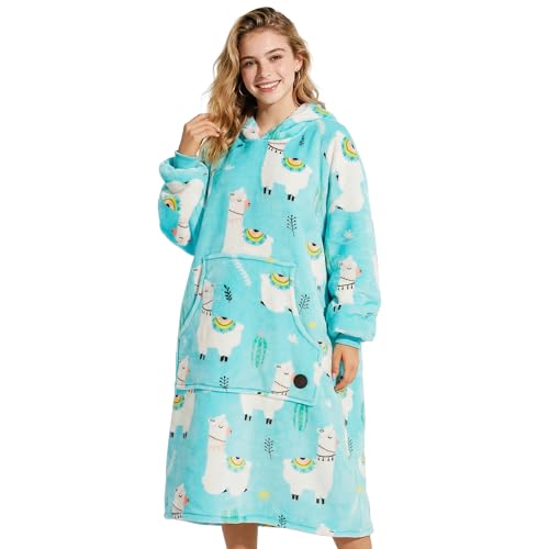 THREE POODLE Oversize Hoodie-Decken Pullover Kuschelpullover für Damen Herren Kinder, Warm und Weiches Futter, Sherpa-Decke mit Verschiedene Muster Verfügbar