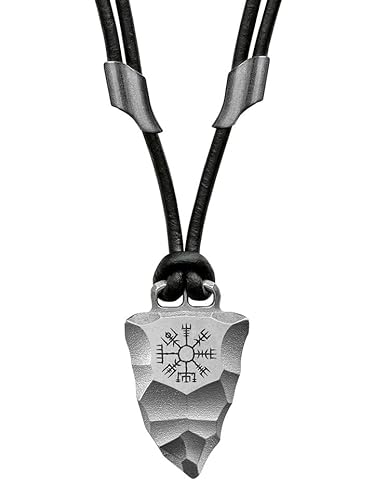 Element of Gods Titan Faustkeil Vegvisir Wikingerkompass Anhänger mit Lederband in schwarz