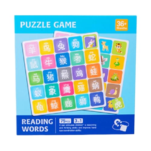 Alphabetisierungsspiele für den Kindergarten, Wort-Matching-Puzzle - Englisches Wort-Bild-Lese-Puzzlespiel,Magnetische, unterhaltsame chinesische Schriftzeichen-Rätsel für Fortgeschrittene für die Fam