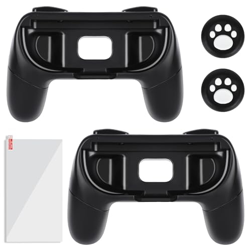 HOCUCHELAND 2 Stück Controller Griff Kompatibel mit Nintendo Switch 2 Joycon (2025), Grip Halterung mit 2 Daumengriffe und Gehärtete Folie für Switch 2 Controller (Schwarz)