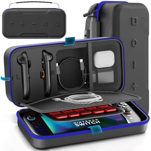 OIVO Switch 2 Case kompatibel mit Nintendo Switch 2025, Hartschalen Schutzhülle passend für Joy Con 2 & Adapter, Tasche für Switch 2 mit 24 Spielkarten Aufbewahrung, Nintendo Switch 2 Zubehör Blau