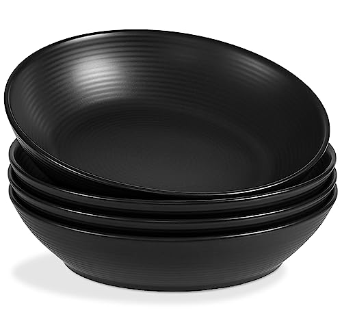 ONEMORE Pastaschüsseln, 4er-Set, 1.2 l, große Salatschüsseln für die Küche, 24.1 cm, runde Keramik-Suppenschüsseln, mikrowellen- und spülmaschinenfest, stapelbares Schüssel-Set – Schwarz