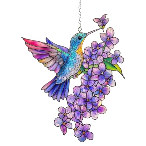 MWZBTG Kolibri Sonnenfänger | Blumen Kolibri Wanddekoration Aufhängbarer Dekoartikel,Acryl-Regenbogen-Spieleffekte Für Gartenzweige Balkongeländer