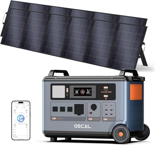 OSCAL PowerMax 6000W Solargenerator mit 2x500W Solarpanel, 3600Wh Tragbare Powerstation, Erweiterbar auf 57.6kWh, LiFePO4-Akku, Vollladung in 1,96 Std, USV, Mobiler Stromspeicher für Camping, Notstrom