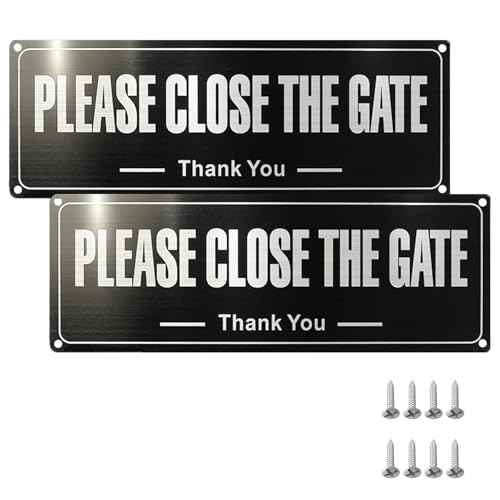 Oiieco 2 Stück Schild mit Aufschrift "Please Close The Gate", Please Shut The Gate, schwarzes Edelstahl-Türschild, Wand oder Tür, personalisierbar, für Innen- und Außenbereich, Tor, Garten