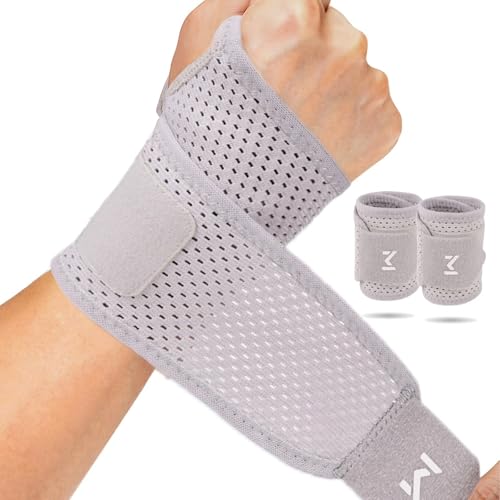 Jorun 2 Pcs Handgelenk Bandagen Grau Handgelenkstütze Einstellbar Bandage Handgelenk - Weich Atmungsaktiv Handgelenkschoner- für Pain Relief, Sports,Work (Grau)